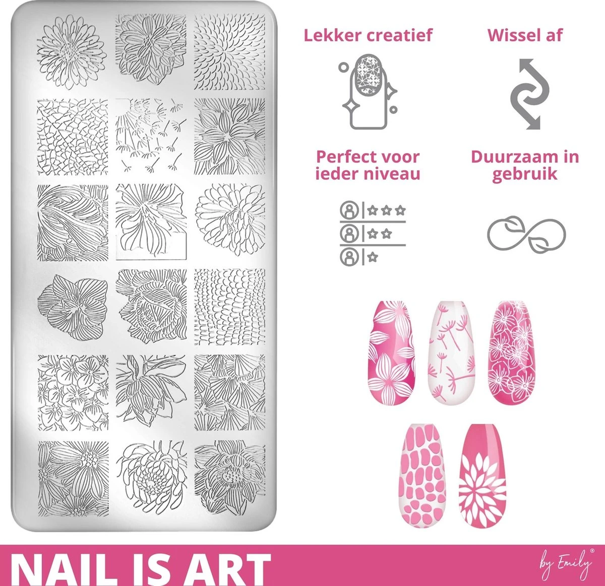 LET OP: Je hebt wel een nagelstempel & schraper nodig, dus kies voor de By Emily nagelstempen & schraper als je deze nog niet hebt! We hebben er een handig setje voor gemaakt met stencil.