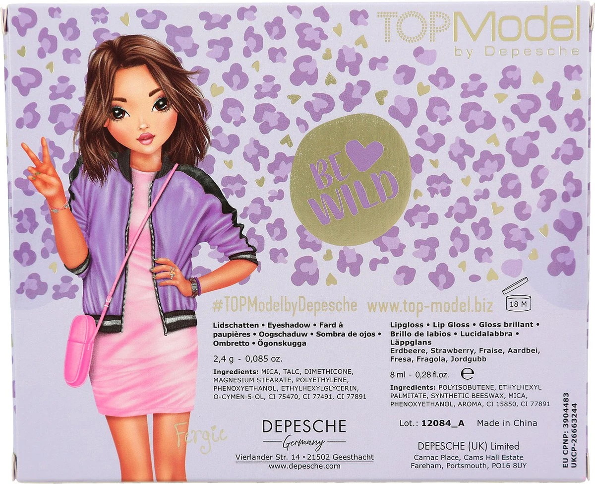 Voor grote fans van de panterprint! De schattige beauty set van TOPModel is dubbel zo trendy: de kleur paars en de hippe dierenprint. De set bestaat uit een roze oogschaduw (2,4 g) in een doosje met schattige oortjes en een roze lipgloss (8 ml, aardbeiengeur) met paarse pompon sleutelring.