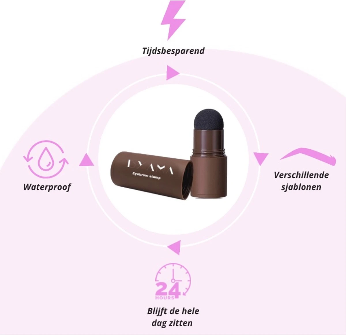 - *Tip: in de dop van de browstamp zit het pigment. Dep de spons voor gebruik dus goed in de dop!