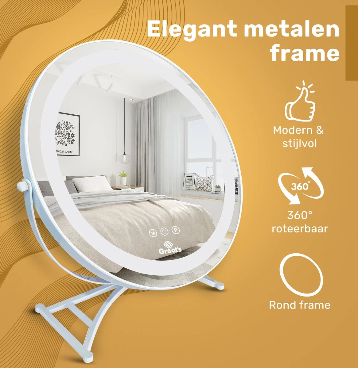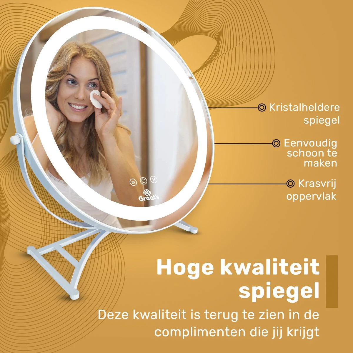 De make up spiegel van Great’s® wordt geleverd met een close-up spiegeltje die 10x vergroot. Super handig wanneer je een bril draagt of heel precies moet werken, zoals bij het epileren van je wenkbrauwen. Deze is gemakkelijk overal op de spiegel te plaatsen.