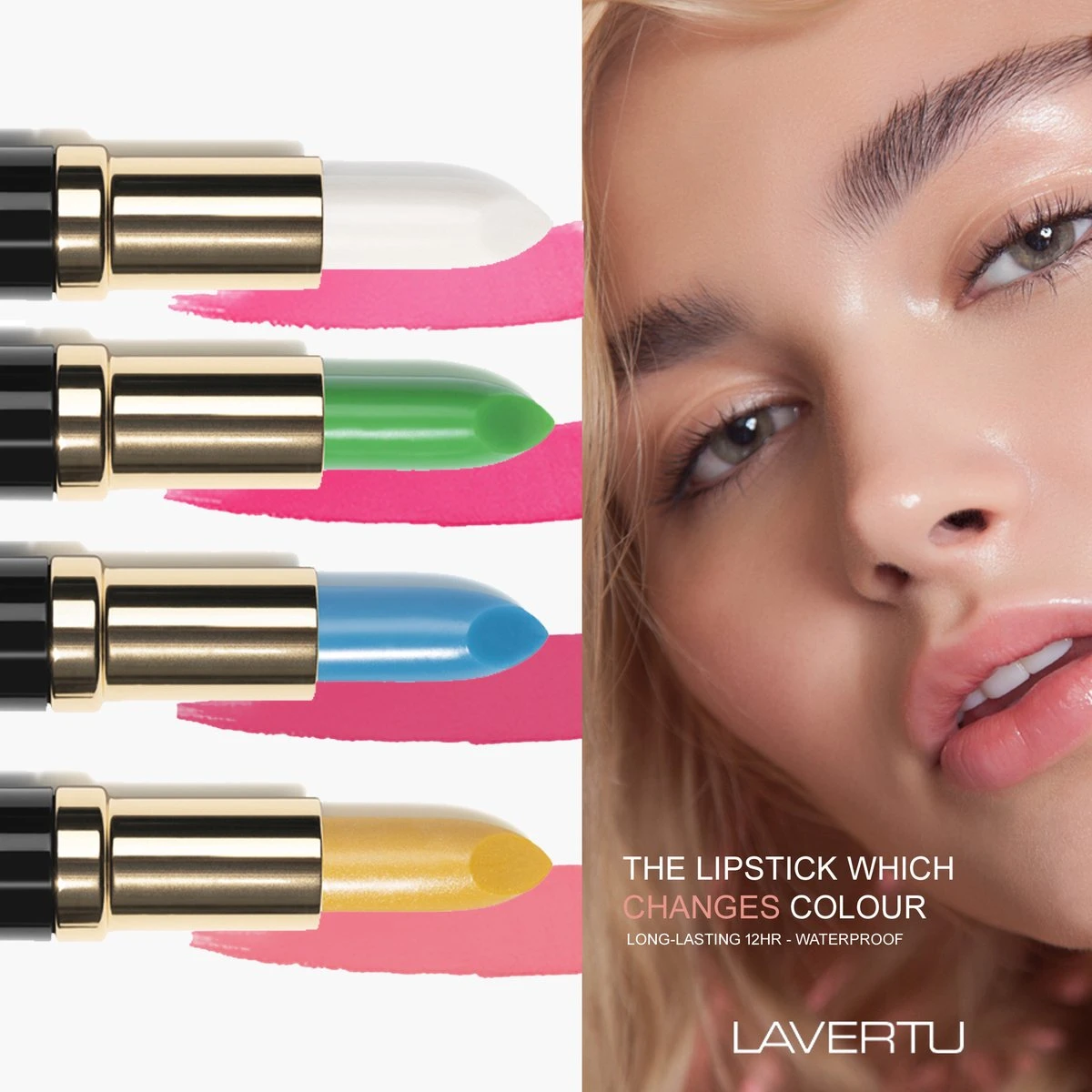 De lipstick geeft niet af, is waterproof en tevens rijk aan verzorgende bestanddelen zoals aloë vera, lanoline en bijenwas. De lipstick is verkrijgbaar in 4 persoonlijke tinten. De witte lipstick kleurt de lippen fris roze, groen wordt warm cyclaam, blauw stralend fuchsia en geel wordt zalmroze. U bepaalt dus zelf de kleurnuance die bij uw karakter en stemming past.