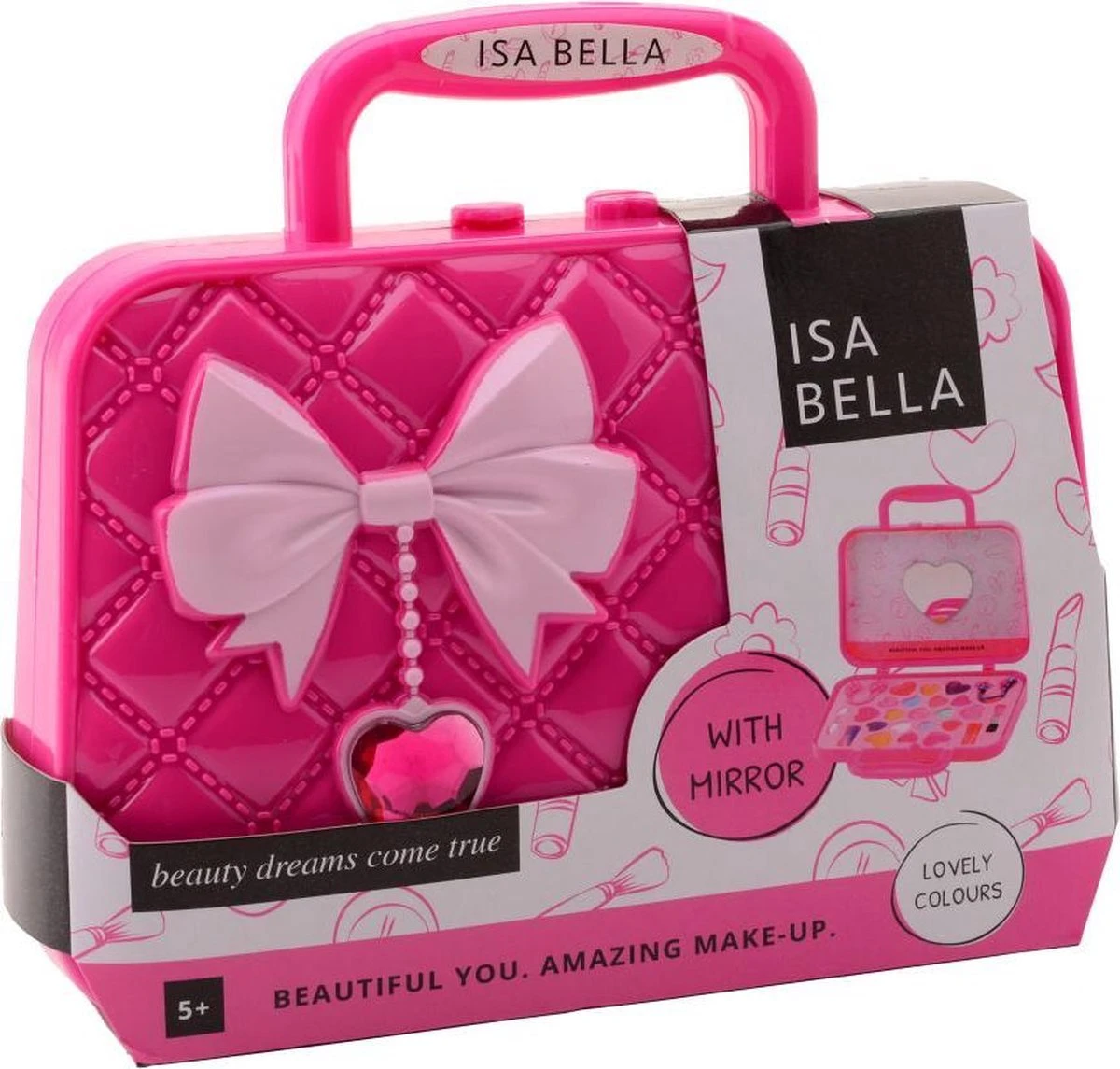 Vind jij het leuk om jezelf op te maken? Dan is deze make-up-koffer met spiegeltje echt iets voor jou! In de set zitten verschillende kleuren lipgloss, oogschaduw en lippenstift. Ook zitten er 2 haarelastiekjes in deze set. De koffer is gevuld verschillende kleuren lipgloss en oogschaduw in hartjesvorm en lippenstift. Ook zitten er twee haarelastiekjes met bloemetjes en een spiegel in de koffer. De koffer is geschikt vanaf 5 jaar.