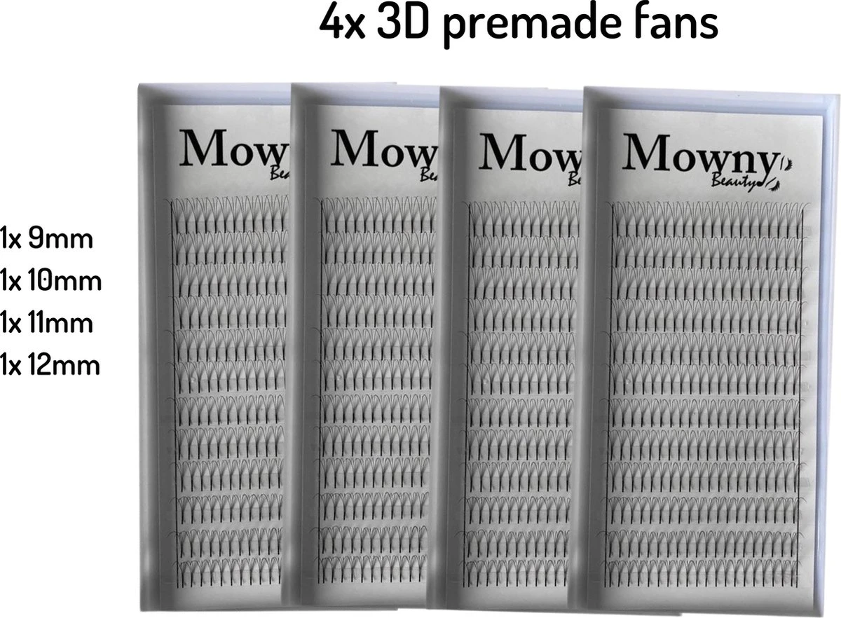 - 4x Mowny Beauty 3D premade fans (9mm, 10mm, 11mm, 12mm)